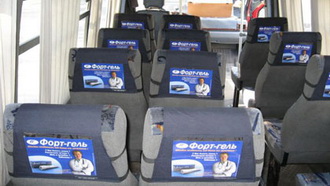 Рекламные подголовники для такси, автобусов - пошив на заказ