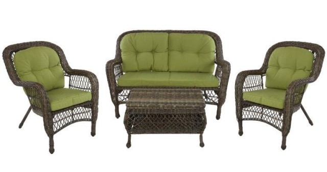 Мы хотим предложить вам подушки, предназначенные для комплекта садовой плетёной мебели АМ-520, в комплекте присутствуют подушки для дивана и двух кресел, спинка и сидение являются раздельными. Подушки для спинки прошиты при помощи пуговиц, они имеют зелёный цвет. В качестве наполнителя для сидения используется поролон, в качестве наполнителя для спинки хлопковый очес. Подойдут подушки для кресла, высота которого составляет 91,5 см, глубина 80 см, а ширина 74 см. Также есть подушки для дивана, высота которого составляет 91,5 см, глубиной 80 см, шириной 142 см.
