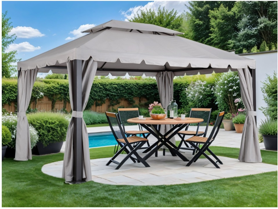 Текстильный комплект Павильон Veoms 3 x 4м цвет серый - это надежное решение для создания комфортной зоны на открытом воздухе. Конструкция состоит из прочного тента, который крепится к шатру, и набора штор, которые обеспечивают дополнительную защиту от солнца, дождя и ветра. Крыша-тент и шторы выполнены из качественных материалов, которые обладают высокой устойчивостью к внешним воздействиям. Они легко устанавливаются и быстро снимаются, что позволяет быстро реагировать на изменения погодных условий. Благодаря своей простоте и удобству, комплект на садовый шатер станет идеальным выбором для пикников, барбекю и других мероприятий на природе.