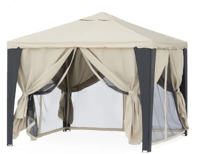 • Тентовый навес – отличная защита от трех главных негативных летних факторов: под ним не страшны докучливые насекомые, моросящий дождь и палящее солнце.