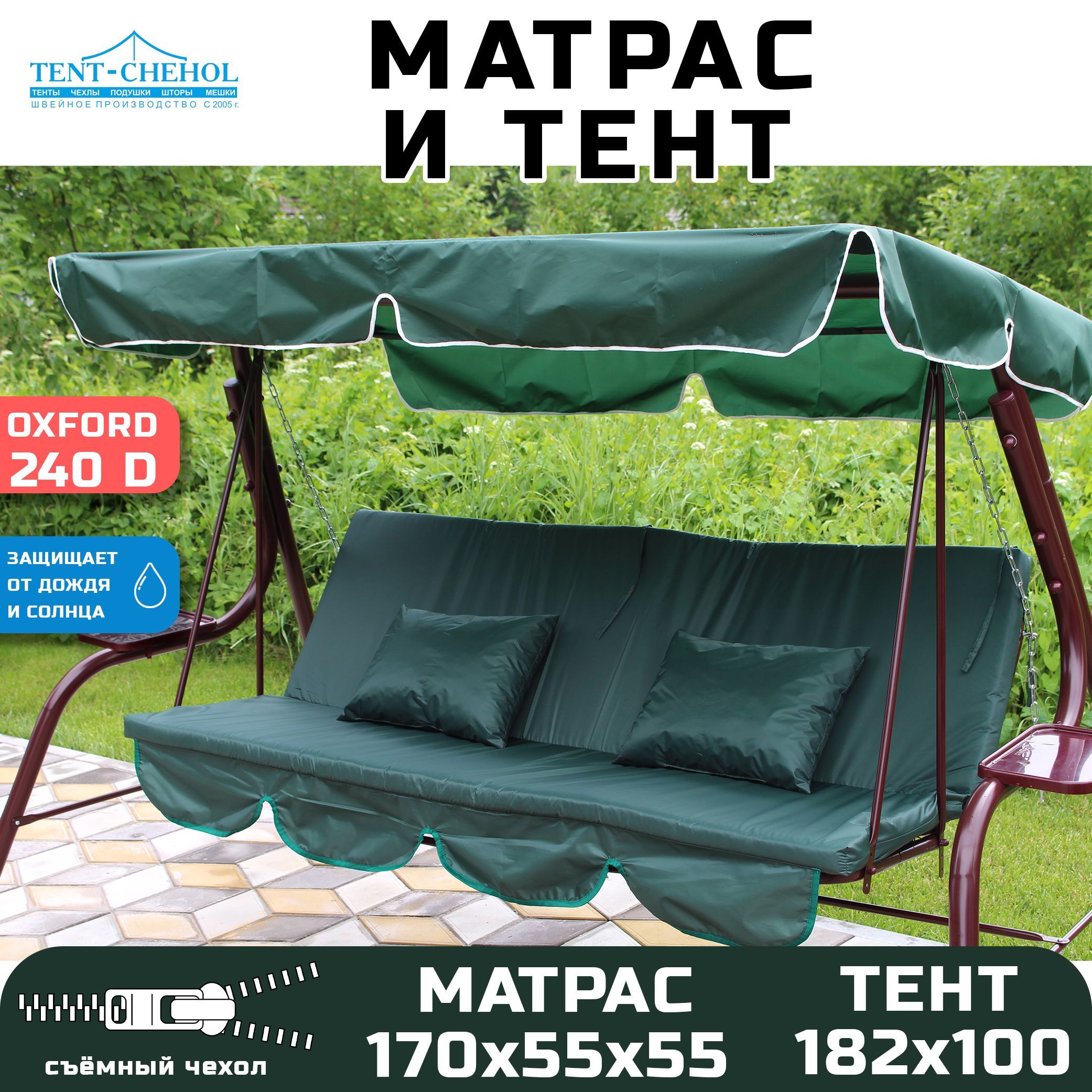 Купить Тент и матрас для садовых качелей, 182х100 и 170х55х55 (оксфорд240 еловый) цена 5900 руб. в Москве и СПб с доставкой по России