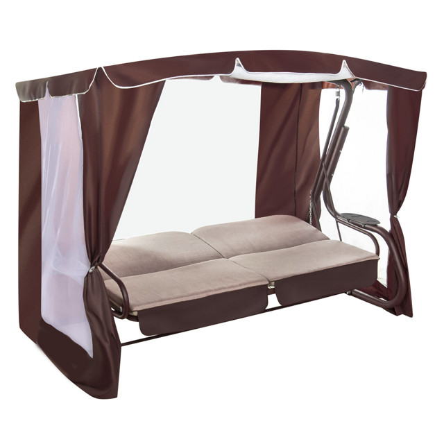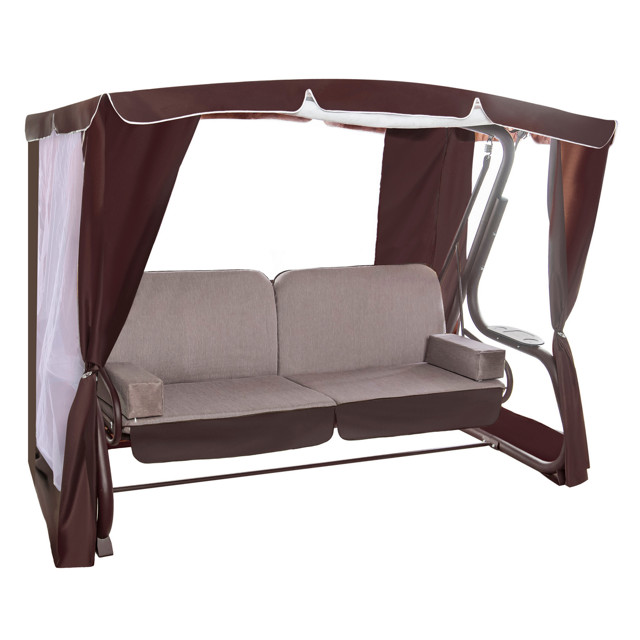 Это тент, предназначенный для садовых качелей, у него шоколадный цвет. Подходит этот тент для качелей, имеющих размер 245х145х185 см. Изготовлен тент из такой ткани, как оксфорд. Для того, чтобы приобрести данное изделие, добавьте в корзину необходимое количество позиций и оформите заказ.